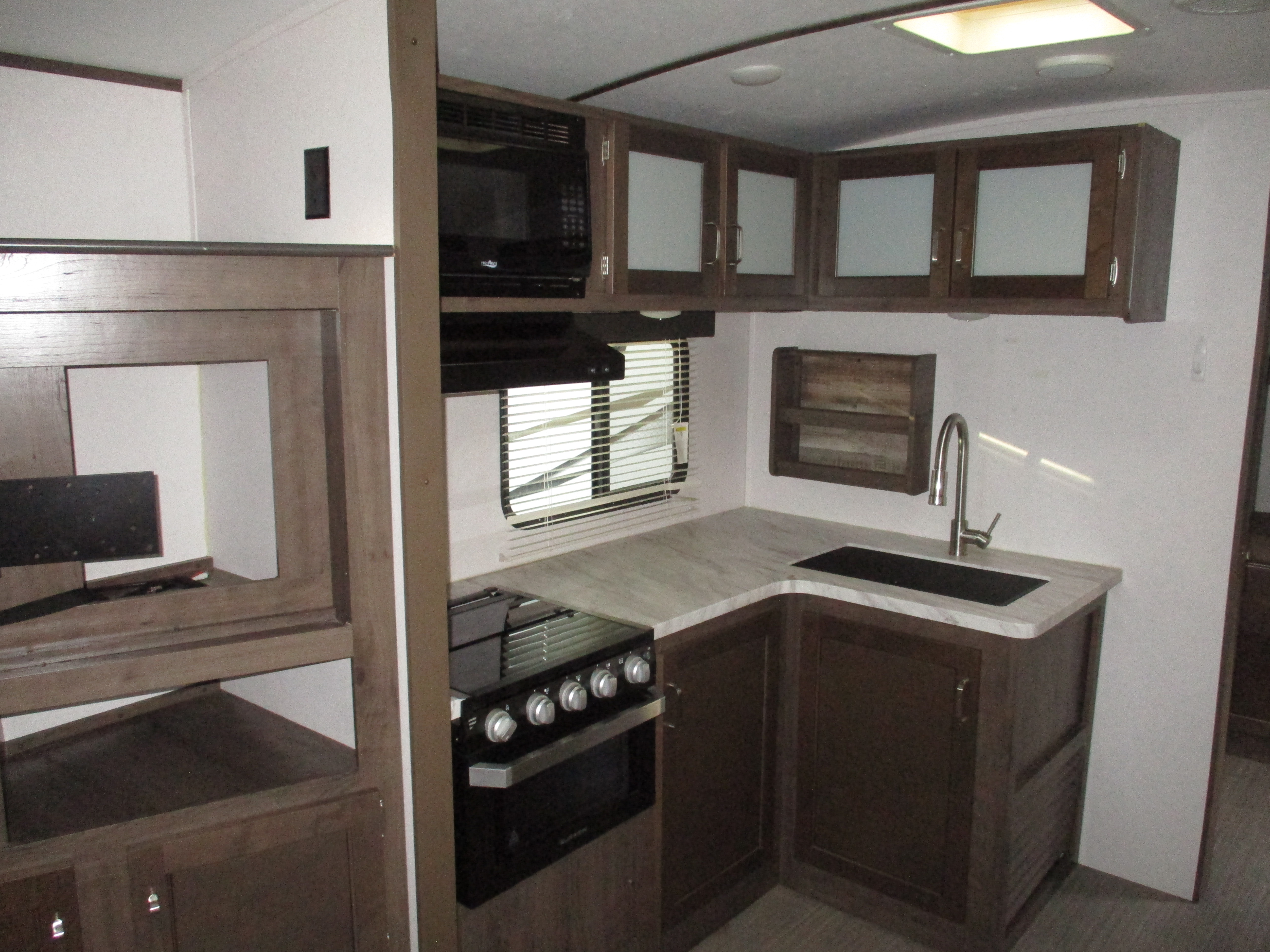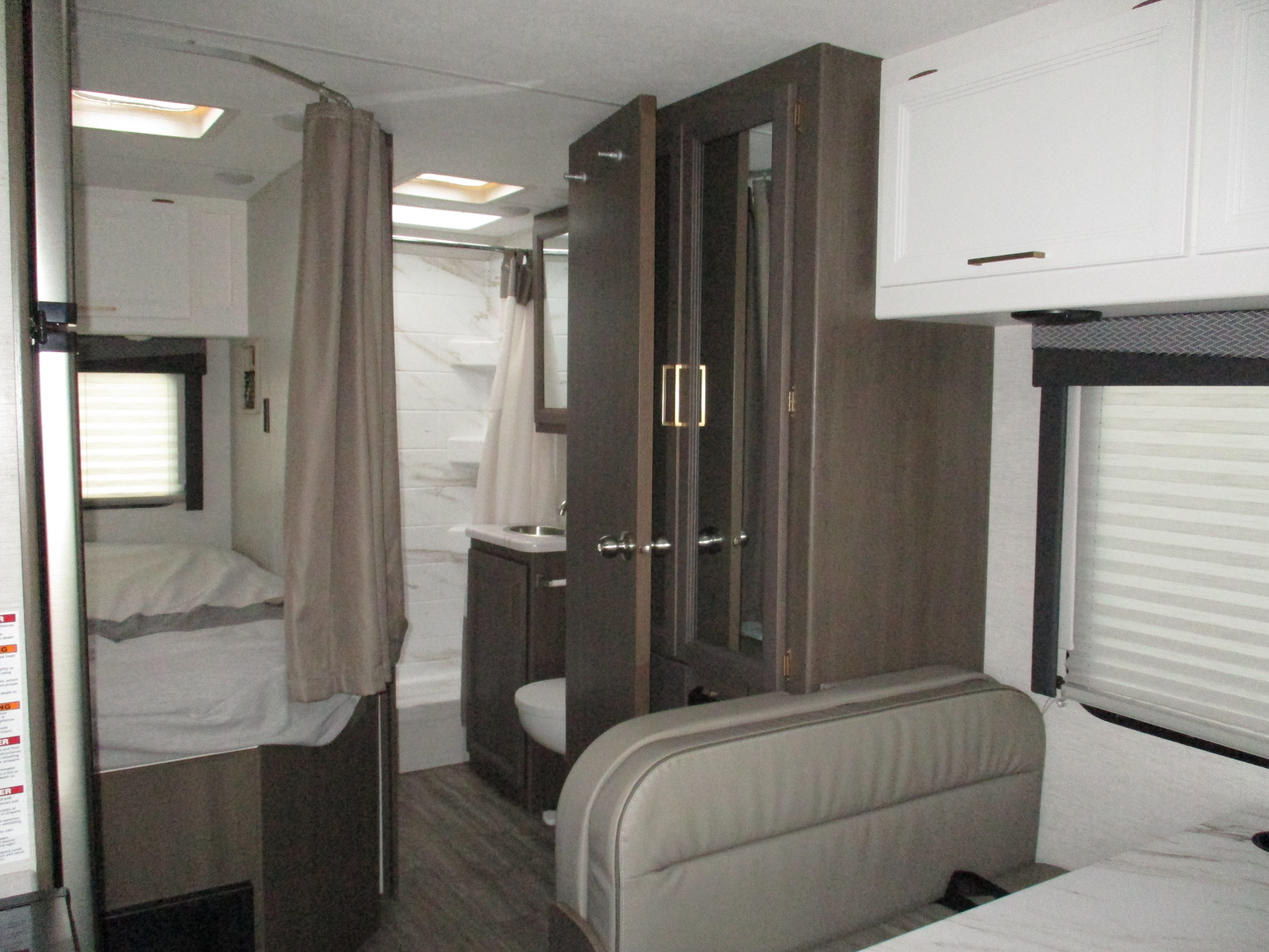 Bunks,Sofa+Dinette Lth,LF.Corner Storage Area Water Damage,Ext.Railing